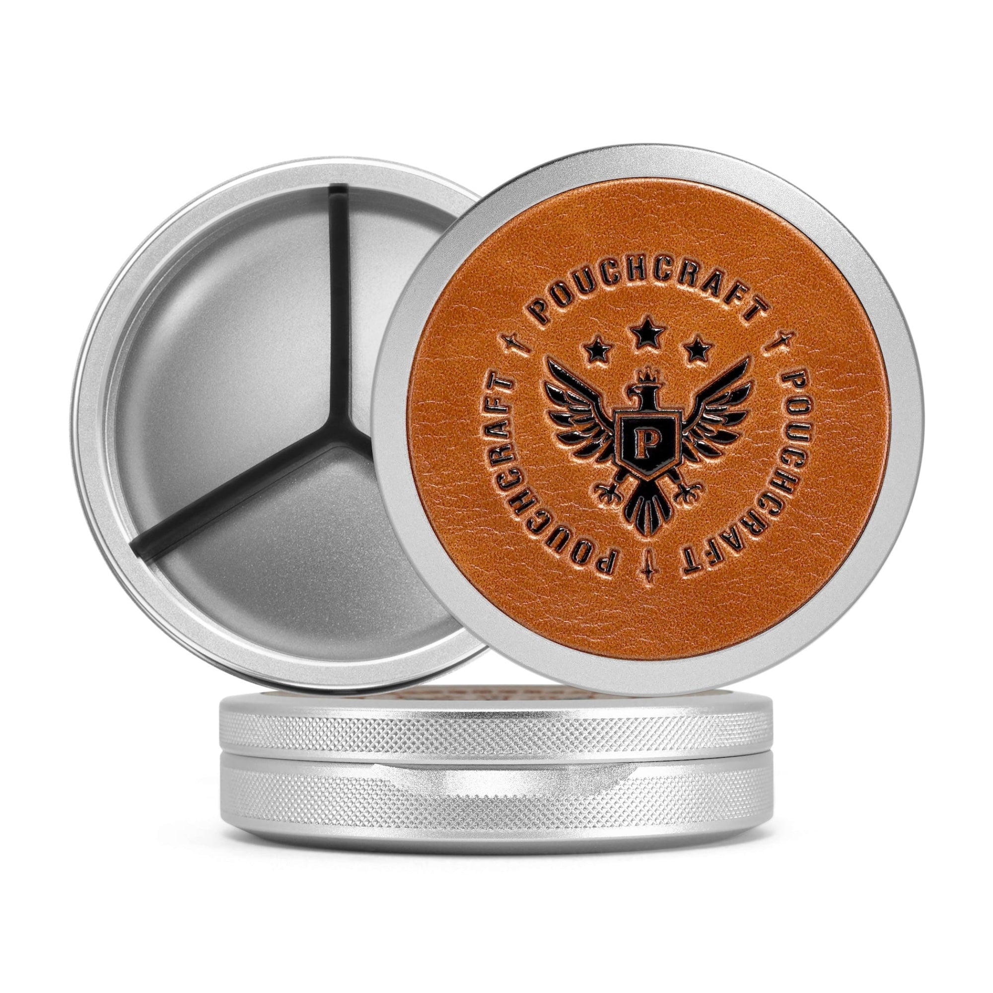 Crafted from three lightweight aluminum components, this product functions as a dual-compartment stronghold. Whether you prefer to keep distinct flavors separate or organize fresh from used pouches, it offers versatile storage options.