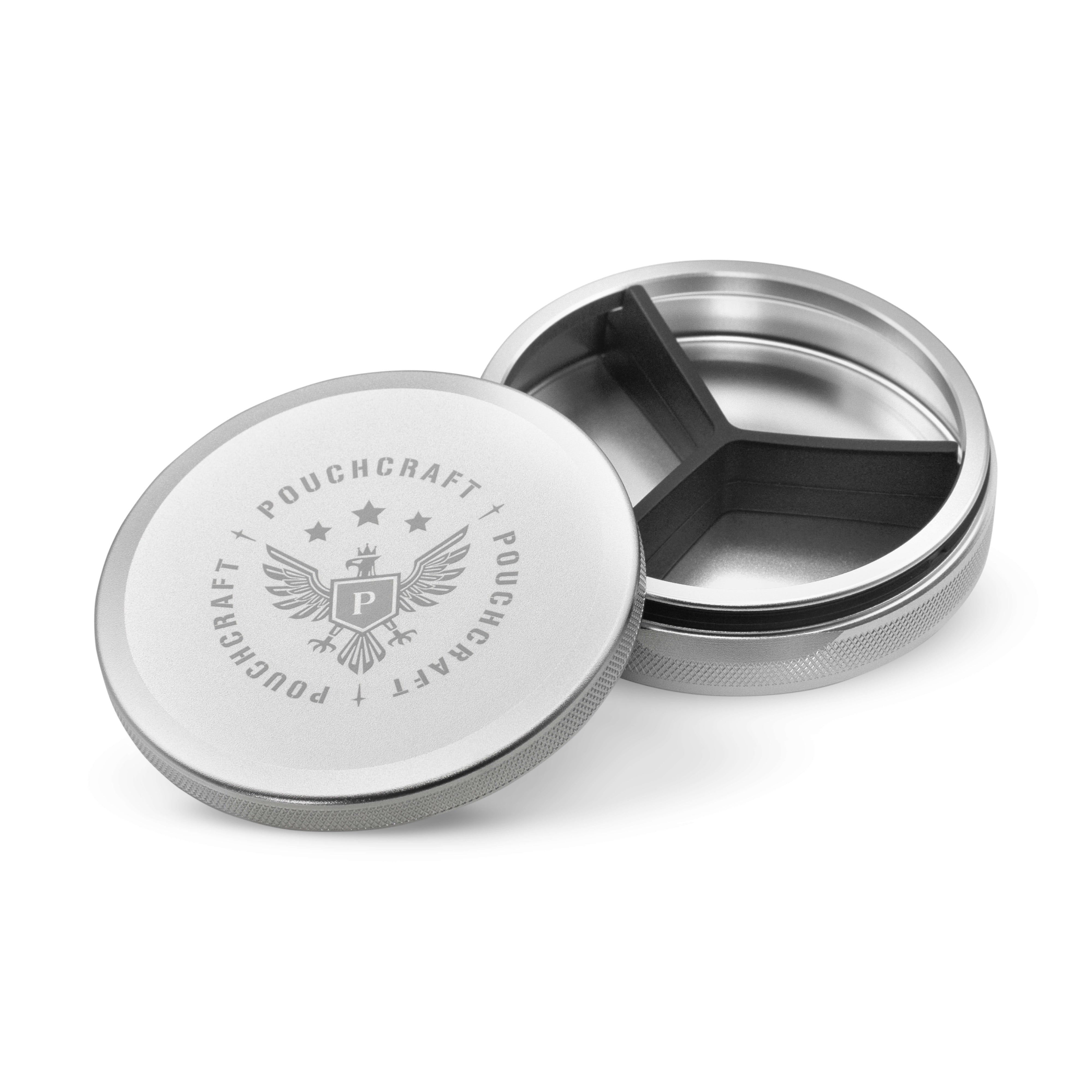 The three-piece construction creates a dedicated upper compartment—perfect for storing used pouches (to be used again later, if that's your thing) or keeping flavors separated. Fresh below, fallen above. Simple. Practical. Surprisingly useful once you start using it.